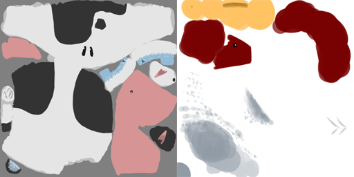 Low Poly, Cow is using 656 tris, Chicken is using 466 tris, both have 512x512 diffuse maps.